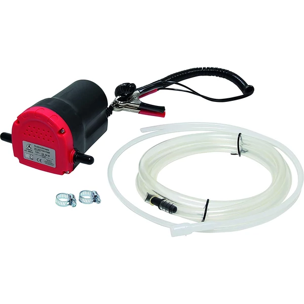 Ideális berendezés a gyors és tiszta olajcseréhez. Az olajszivattyú csipesszel csatlakoztatva a 12 V-os akkumulátorra, képes eltávolítani a használt olaj 100%-át az olajnívó csövén keresztül.