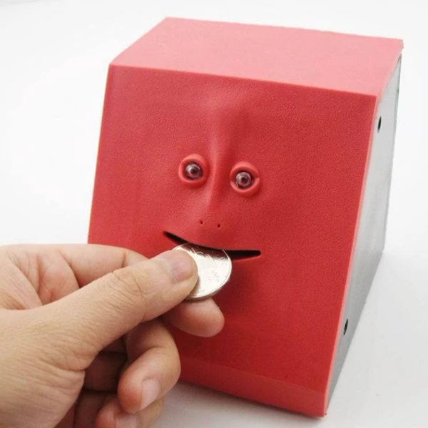 Az arc mintájú persely egy egyedülállóan tervezett ’malacpersely’, amely szó szerint eszi a pénzt! Ez a gyerekek számára is rendkívül szórakoztató, mert amikor hozzá közelíti a kezét, a beépített mozgásérzékelő bekapcsolja és a szája mozogni kezd. Elnyeli a szájába adott pénzérmét, és újra készen áll az evésre.